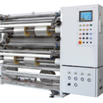 blade adjustments, this slitter rewinder features a space-saving footprint